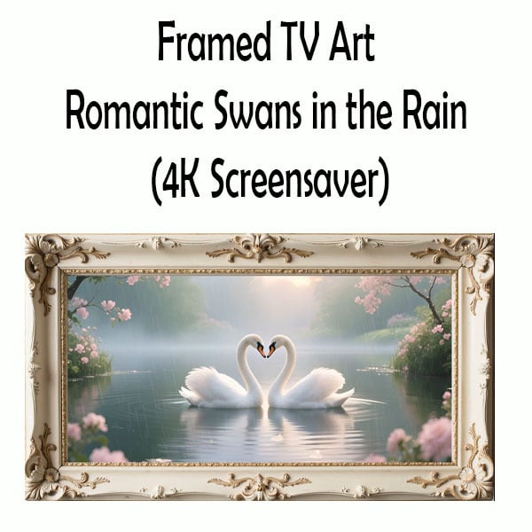 Swan Heart Romantic Screensaver | Elegant Love Framed TV Art