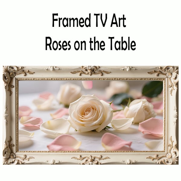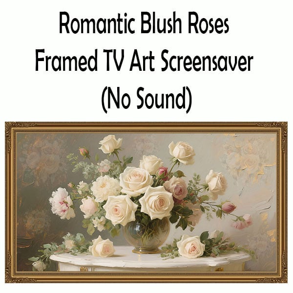 Blush Roses Oil Painting Framed TV Art | Elegant Floral Home Decor Ambience
