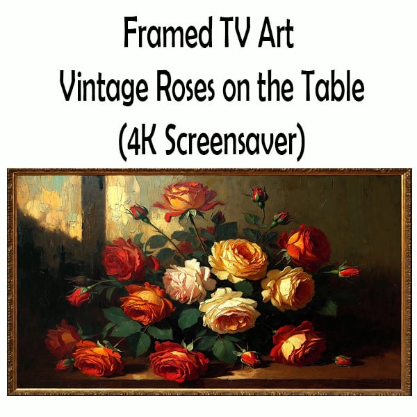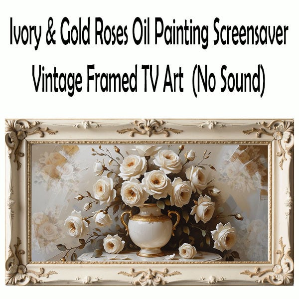 Ivory & Gold Roses Oil Painting Screensaver | Vintage Framed TV Art (No Sound)
